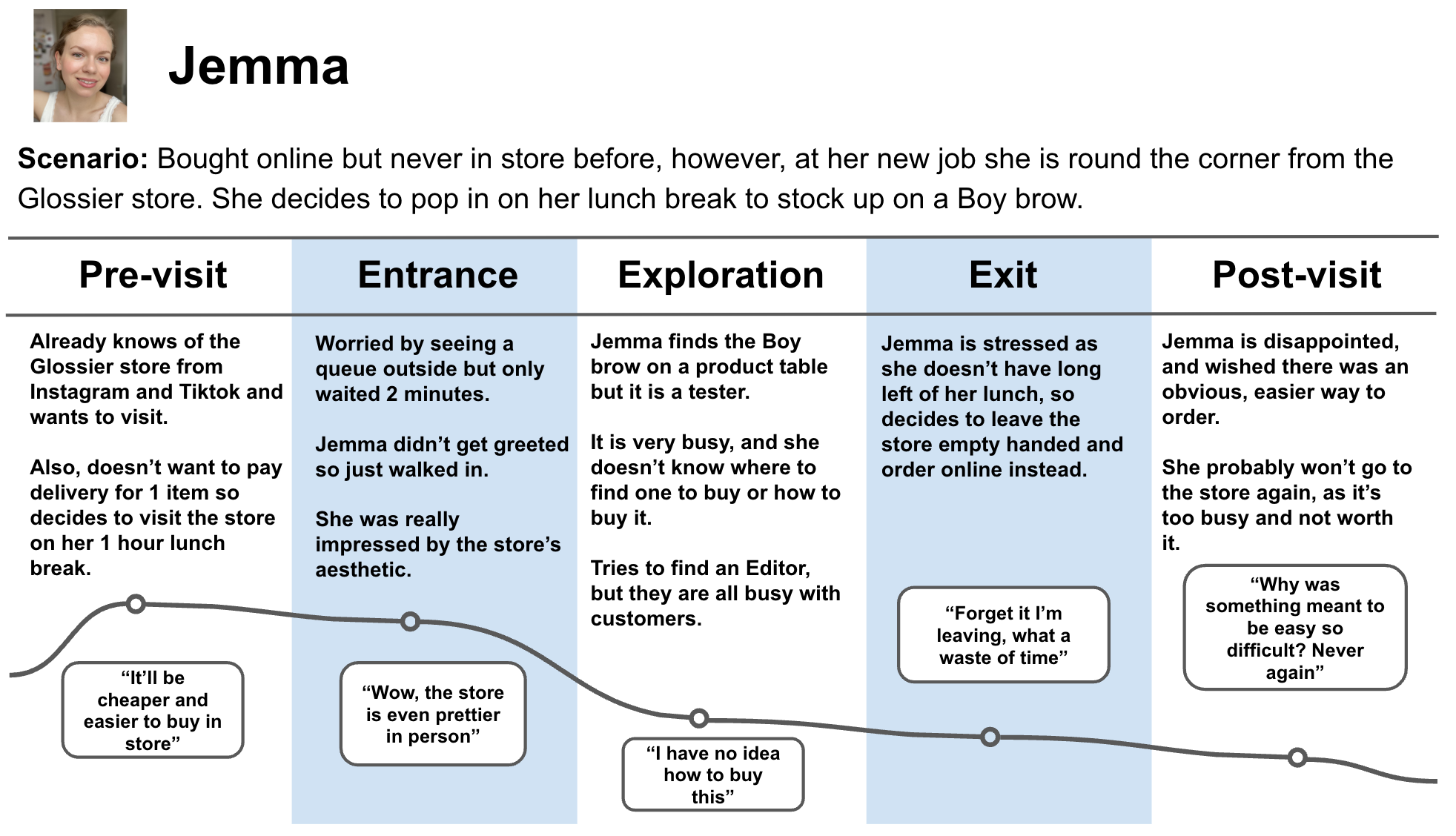 Glossier’s London store fails to meet important customer needs at one or more points throughout the store experience. This results in customer dissatisfaction and poor customer retention.